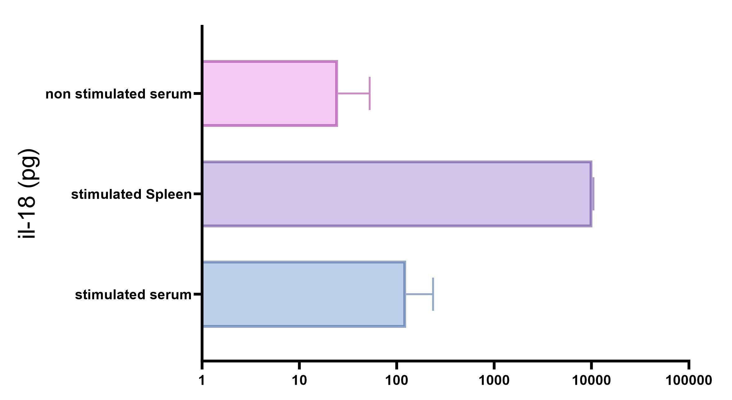 Interleukin 18 (IL-18), also known as interferon-gamma-inducing factor (IGIF) and IL-1γ, is a cytokine which shares biologic activities with IL-12 and structural similarities with the IL-1 family of proteins. IL-18 was originally cloned from liver cells and has since been shown to be expressed by monocyte/macrophages, osteoblasts and keratinocytes. Caspase-1 (IL-1 beta-converting enzyme) has been implicated in the physiological processing of pro-IL-18 to IL-18. Similarly to IL-12, human IL-18 has been shown to enhance NK cell activity in PBMC cultures. Human IL-18 has also been found to induce the production IFN-γ and GM-CSF while inhibiting the production of IL-10 by PBMC. On enriched human T cells, human IL-18 can enhance Th1 cytokine production and stimulate cell proliferation via an IL-2-dependent pathway. In the mouse system, IL-18 has been shown to be a costimulatory factor for the activation of Th1, but not Th2, cells. IL-18 was found to selectively enhance the FasL-mediated cytotoxicity of Th1, but not Th0 or Th2, cells. IL-18 has also been shown to induce activated B cells to produce IFN-γ that inhibits IgE production.