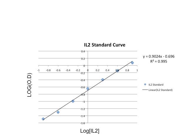 ELISA plates were coated by incubating the diluted capture antibody (anti-rat IL2,R&D systems) overnight at 4C. To detect the plate-bound IL2 from the culture supernatant, the detection antibody (biotin anti-rat IL2) was used at 400ng/mL, followed by avidin-HRP.