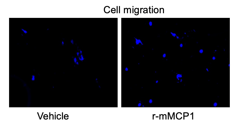 Recombinant Mouse CCL2/JE/MCP-1 (Catalog # 479-JE) chemoattracts the BaF3 mouse pro-B cell line transfected with human CCR2A. The ED50 for this effect is 2-10 ng/mL.