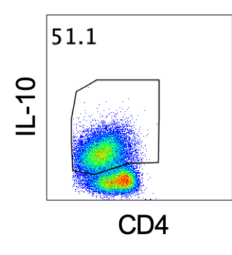 Naive (CD4+CD44+CD62L++CD25-) mouse T cells were stimulated with anti-CD3, anti-CD28, IL-2 and 50 ng/mL IL-27. IFNg and IL-10 secretion was analyzed in the culture supernatants 5 days later by multiplex assays.
