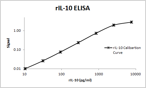 The recombinant rat IL-10 worked well in building a calibration curve for an ELISA. MAB519 and BAF519 were the antibodies used to build the rat IL-10 ELISA.