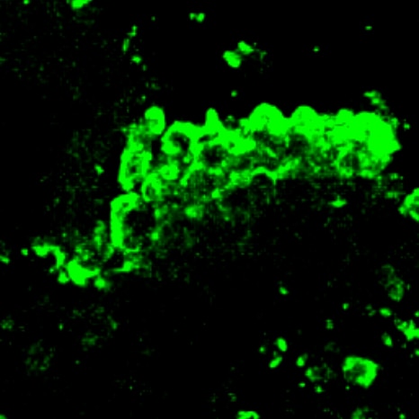 Spike S1 Subunit in SARS-CoV-2 Infected Mouse Lung. SARS-CoV-2 infected mouse lungs sections were immunostained with SARS-CoV-2 S1 (1:400) for 1 hour and washed with 1xPBS and secondary antibody added for 1 hour at 1:400 and washed and imaged by confocal microscopy. Image from a verified customer review.