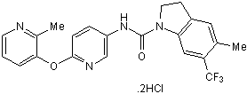 Chemical Name: 2,3-Dihydro-5-methyl-N-[6-[(2-methyl-3-pyridinyl)oxy]-3-pyridinyl]-6-(trifluoromethyl)-1H-Indole-1-carboxamide dihydrochloride