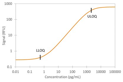 Simple Plex Human I-TAC Assay Standard Curve Data shown represents typical performance results for Lower Limit of Quantitation (LLOQ) and Upper Limit of Quantitation (ULOQ) for Simple Plex Human I-TAC Assay. Assay range is 0.545-2080 pg/mL.