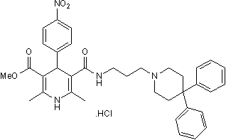 Chemical Name: 5-[[[3-(4,4-Diphenyl-1-piperidinyl)propyl]amino]carbonyl]-1,4-dihydro-2,6-dimethyl-4-(4-nitrophenyl)-3-pyridinecarboxylic acid methyl ester hydrochloride