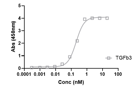 Transforming Growth Factor Beta 1, 2, and 3 (TGF-beta 1, TGF-beta 2, and TGF-beta 3) are highly pleiotropic cytokines that virtually all cell types secrete. TGF-beta molecules are proposed to act as cellular switches that regulate processes such as immune function, proliferation, and epithelial-mesenchymal transition. Targeted deletions of these genes in mice show that each TGF-beta isoform has some non-redundant functions: TGF-beta 1 is involved in hematopoiesis and endothelial differentiation; TGF-beta 2 affects development of cardiac, lung, craniofacial, limb, eye, ear, and urogenital systems; and TGF-beta 3 influences palatogenesis and pulmonary development. The full range of in vitro biological activities of TGF-beta 5 has not yet been explored. However, TGF-beta 1, TGF-beta 2, TGF-beta 3, and TGF-beta 5 have been found to be largely interchangeable in an inhibitory bioassay, and it is anticipated that TGF-beta 5 will show a spectrum of activities similar to the other TGF-beta family members. To date, the production of TGF-beta 5 has only been demonstrated in Xenopus.