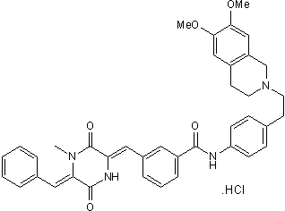Chemical Name: N-[4-[2-(3,4-Dihydro-6,7-dimethoxy-2(1H)-isoquinolinyl)ethyl]phenyl]-3-[(Z)-[(5Z)-4-methyl-3,6-dioxo-5-(phenylmethylene)piperazinylidene]methyl]benzamide hydrochloride