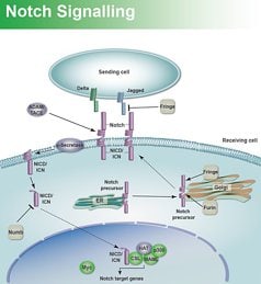 The Notch pathway is involved in determination of cell fate, regulation of pattern formation and other developmental settings. Disrupted signaling can cause developmental defects and a range of adult pathologies.