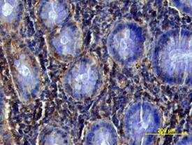 Hepatocyte Growth Factor Receptor (HGF R)/c-MET) was detected in immersion fixed paraffin-embedded sections of human colon using Human HGF R Monoclonal Antibody (Catalog # MAB3583) at 15 µg/mL overnight at 4 °C. Tissue was stained using the Anti-Mouse HRP-DAB Cell & Tissue Staining Kit (brown; Catalog # CTS002) and counterstained with hematoxylin (blue). View our protocol for Chromogenic IHC Staining of Paraffin-embedded Tissue Sections.