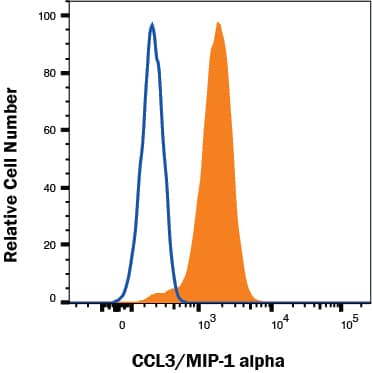 CCL3/MIP-1 alpha, is a beta chemokine that can be induced in a variety of hematopoietic cells, fibroblasts, smooth muscle cells, and epithelial cells. It forms complexes with sulfated proteoglycans and also associates into noncovalently-linked dimers and high molecular weight polymers. These complexes of CCL3 are protected from proteolytic digestion by insulin degrading enzyme (IDE) which can cleave the monomeric chemokine. CCL3 signals through CCR1, CCR3, and CCR5, and it is internalized by the decoy chemokine receptor D6. CCL3 promotes the chemoattraction, adhesion to activated vascular endothelium, and cellular activation of many hematopoietic cell types. It can promote tumor metastasis, hyperalgesia, and inflammation and suppress HIV replication and hematopoietic stem cell proliferation.