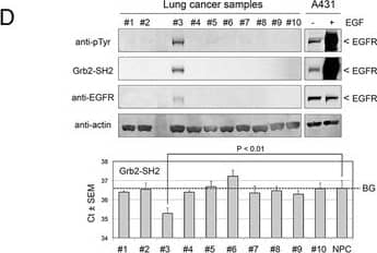 EGFR signaling regulates multiple biological functions including cell proliferation, differentiation, motility, and apoptosis. EGFR is overexpressed in a wide variety of tumors and is the target of several anti-cancer drugs. Soluble receptors consisting of the extracellular ligand binding domain are generated by alternate splicing in human and mouse.