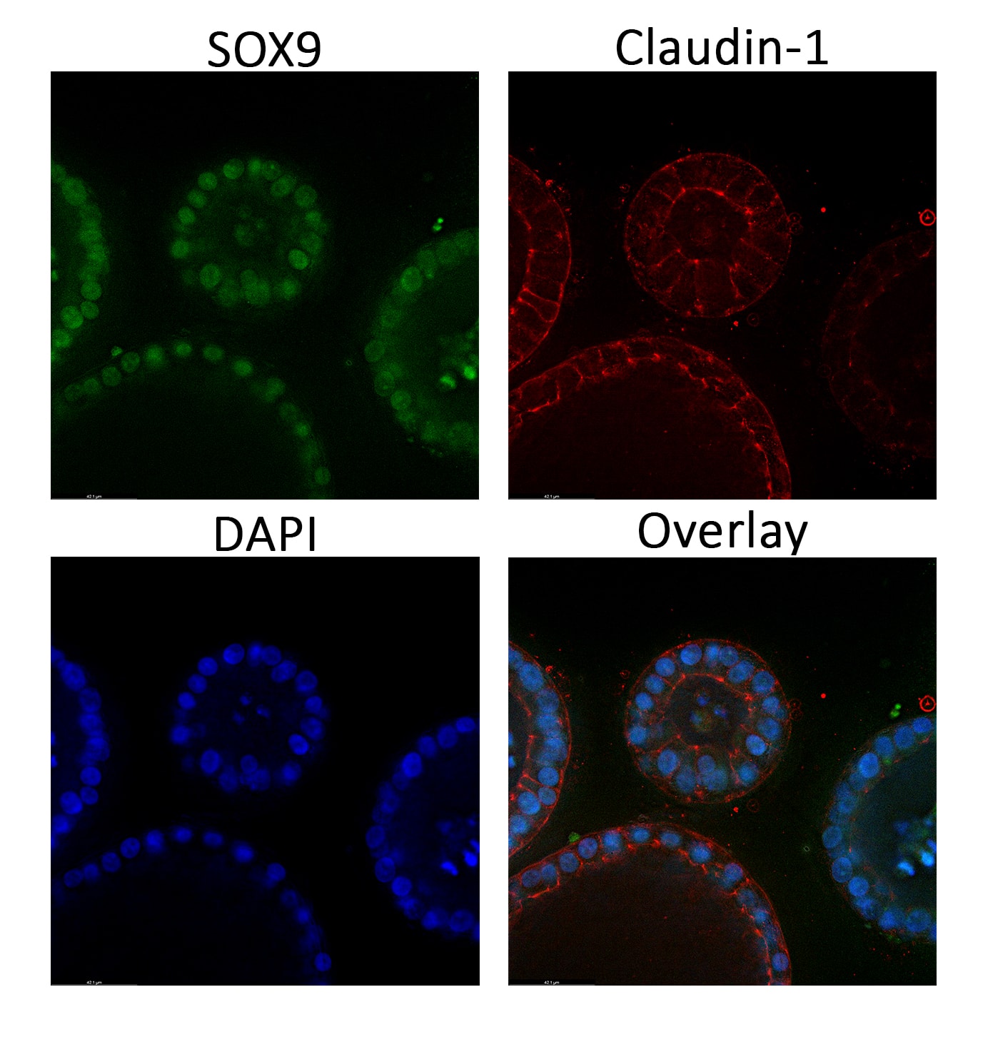 SRY (Sex determining Region Y)-box 9 (SOX9) belongs to the SOX (SRY-like HMG box) family of transcription factors with diverse roles in development. SOX9 is expressed in mesenchymal progenitors that give rise to chondrocytes and osteoblasts. SOX9 is also expressed in the central nervous system, neural crest, intestine, pancreas, and testis. Mutations in SOX9 are associated with defects in sex determination, cartilage and bone development, as well as abnormalities of the heart, kidneys, brain, gut, and pancreas.