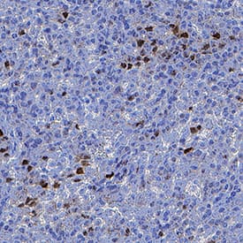 T-box expressed in T cells (T-bet), also known as T-box transcription factor TBX21, is a 62 kDa member of the T-box family of transcription factors and the Tbr1 subfamily. Human T-bet is 535 amino acids in length and contains a T-box DNA binding domain (aa 136-327). Human T-bet shares 88% aa sequence identity with mouse T-bet. T-bet is a nuclear protein highly apparent in Th1-cells. Northern blot analysis revealed that it is also expressed in lung, thymus and spleen. Functionally, T-bet controls the expression of the Th1 cytokine, IFN-gamma, and initiates Th1 lineage development from naive Th precursor cells by both activating Th1 genetic programs and by repressing the opposing Th2 programs.